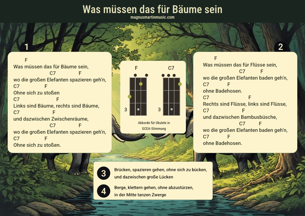 Im Ukulele Unterricht für Kinder in Göttingen bietet das Lied eine tolle Möglichkeit, erste Akkordwechsel zu trainieren.